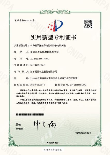 • 一種基于滌綸導電的紗防靜電針刺氈